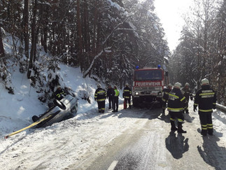 Die FF Gundersdorf rückte mit LFB-A, TLF-A, MTF-A mit 9 Mann und die FF St. Stefan mit LFB-A auch mit 9 Mann zum Einsatzort ab. Zum Glück konnte die im siebten Monate schwangere Frau von stehengebliebenen Helfern aus dem sich auf dem Dach liegenden Fahrzeug befreit werden und den zum Einsatz gerufenen Sanitätern des Grünen Kreuz übergeben werden. Beim Eintreffen der Feuerwehren war die Verletzte schon unterwegs ins LKH Dlbg.