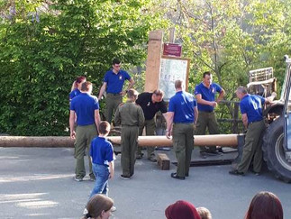 Um 18.30 Uhr wurde schließlich von HBI Reinhard Bäuchler der Befehl „Hebt an!“ gegeben und nach etwa einer Stunde stand der 24 Meter lange Maibaum, der jetzt den Platz vor dem ehemaligen Gemeindehaus ziert.