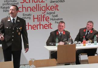 OBR Lanz- bereits 36 Jahre im Dienste der FF- dem natürlich am Jahresbeginn einen Reihe von Wehrversammlungen ins Haus stehen, konnte stolz auf „seine“ 69 Wehren mit 3.841 Mitgliedern (3.017 bzw. 331 Jugend) sein, die im Jahre 2017 mehrmals kräftig gefordert wurden. Unwetter – vor allem im südlichen Bereich des Bezirkes mit großen und schweren Schäden- ließen die Wehren ruhelos agieren. Hier bemängelte er aber doch auch einen gewissen Nachholbedarf in der Kooperation mit der Bezirksverwaltung. Ein großer Dank an die vielen Freiwilligen kam von ihm , denn „wenn der Freiwillige nicht will, steht Österreich still“. Der Abschnitt VII ist mit seinen Bewerbsgruppen bestens unterwegs und zeigt immer wieder seine Klasse auf. Zu den Förderungen führte er an, dass zwar in den Bezirk DL 2,8 Mio € geflossen sind, aber auch, dass die Feuerwehren 638.000 € selbst aufgebracht haben.