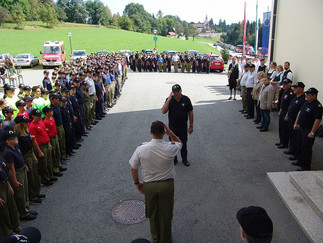 Nach der Überreichung der Abzeichen an die Teilnehmer bedankte sich OBI d. F. Kilian Kutschi nochmals beim gesamten Bewerterteam für die gute Zusammenarbeit und bei der Volksschuldirektorin der VS Hollenegg Dipl. Päd. Karin Held, BEd für die Zurverfügungstellung der Räumlichkeiten. Mit dem abspielen der steirischen Landeshymne wurde die Schlusskundgebung beendet und alle Bewerberinnen und Bewerber traten die Heimreise an.